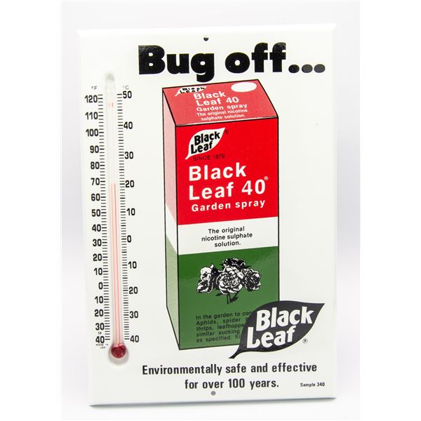 VINTAGE METAL BLACK LEAF THERMOMETER WALL
