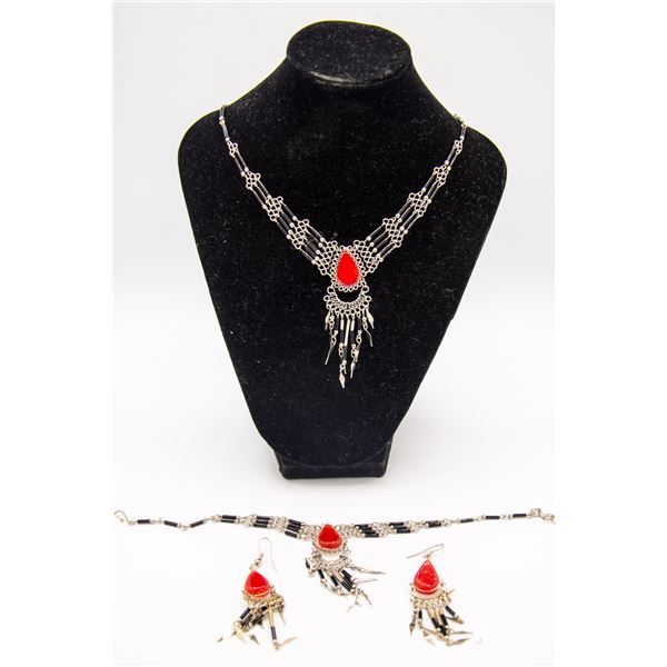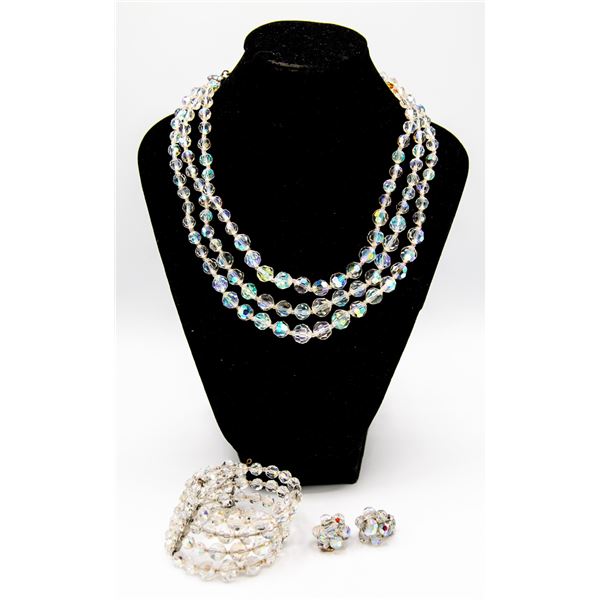 VINTAGE 3-STRAND NECKLACE, EARRING AND