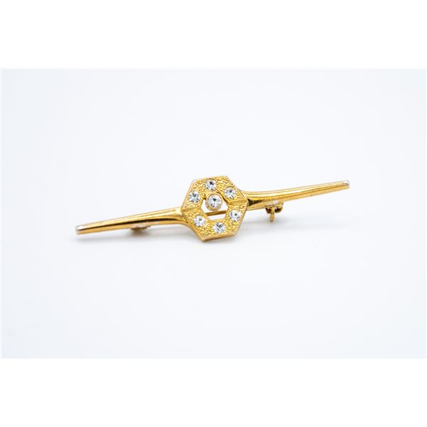 VINTAGE GOLD TONE W/ CLEAR STONE BAR PIN BROOCH