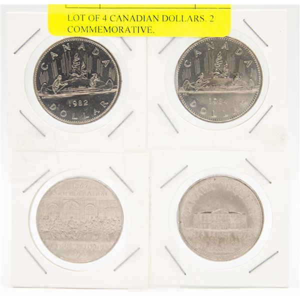 LOT OF 4 CANADIAN DOLLARS. 2 COMMEMORATIVE.
