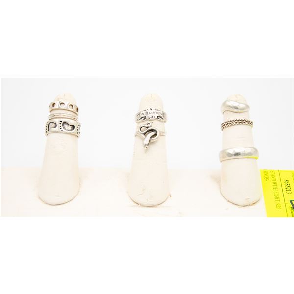 RING STAND WITH EIGHT .925 SILVER RINGS-