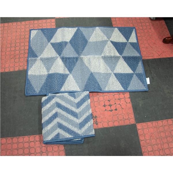 NEW SET OF 2 BLUE/GREY DOORMATS WITH GEOMETRIC
