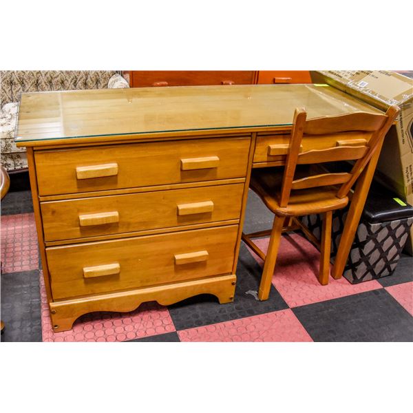 VILAS MAPLE DESK W/ GLASS TOP & VILAS CHAIR