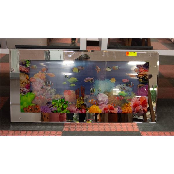 BACKLIGHT WHICH DISPLAYS MOVING FISH, COLOURFUL, CORAL, DEEP 3-D VIEW & BEVELLED MIRROR EDGE, WALL HANG, ON/OFF SWITCH ON CORD (38.5"L X ...