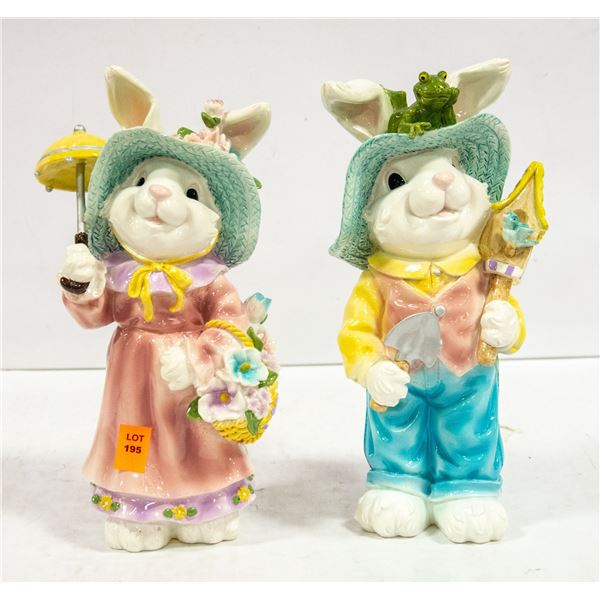SET OF 2 CERAMIC BUNNIES - 1 BOY & 1 GIRL