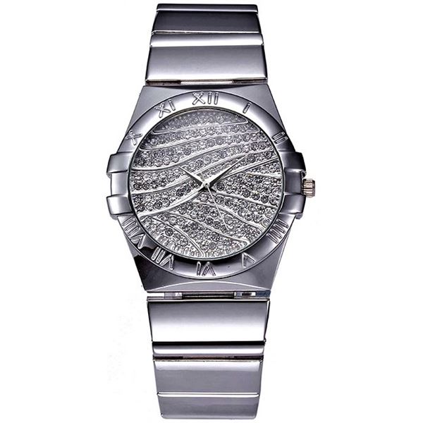 NEW LADIES ROUND SHAPED SILVER TONE CRYSTAL WATCH
