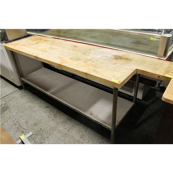 APPROX. 7' WOODEN TOP PREP TABLE W/ UNDERSHELF