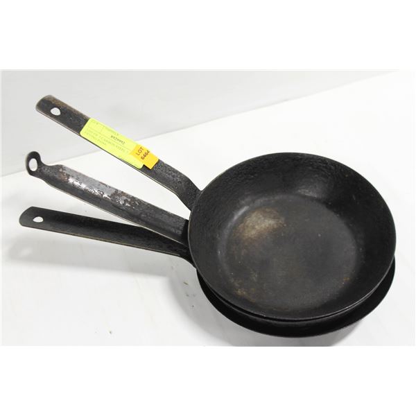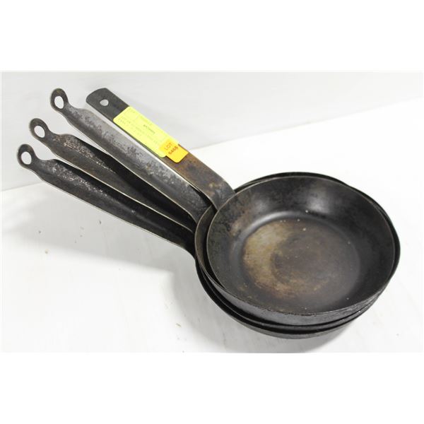 LOT OF 3 CARBON STEEL 7.5" FRYING PANS.