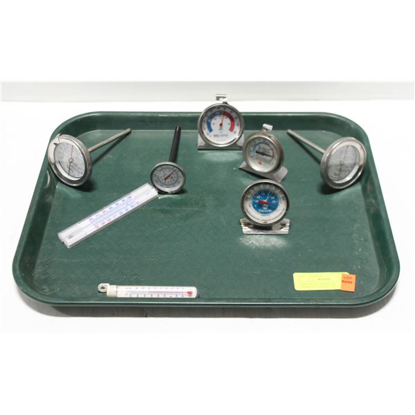 TRAY WITH 7 ASSORTED THERMOMETERS HOT & COLD