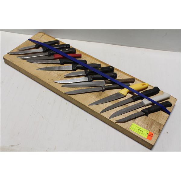 MAPLE CUTTING BOARD W/ 14 KNIVES 24" X 8" X 1"