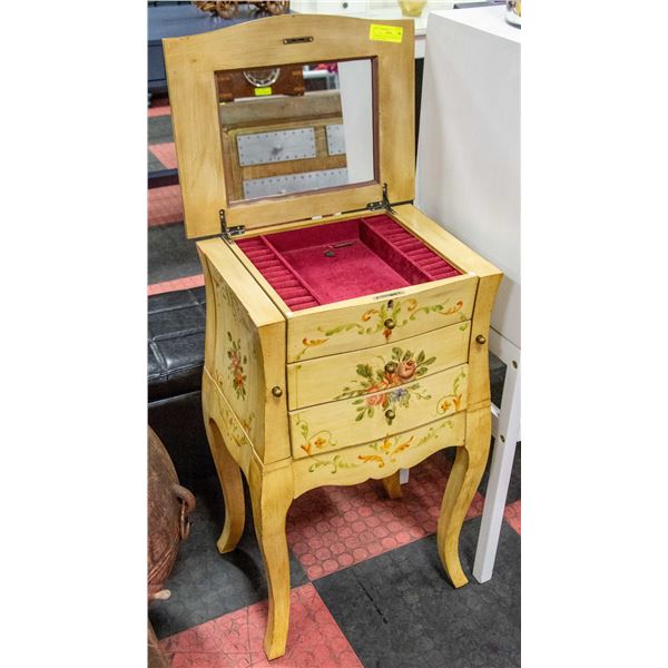 LARGE DECORATIVE JEWELRY BOX ON LEGS W/ KEY