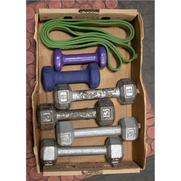 DUMBBELLS & EXERCISE BAND.