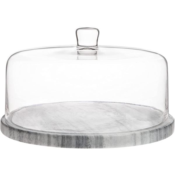 NEW MARBLE CAKE STAND WITH GLASS DOME, PADDED BASE