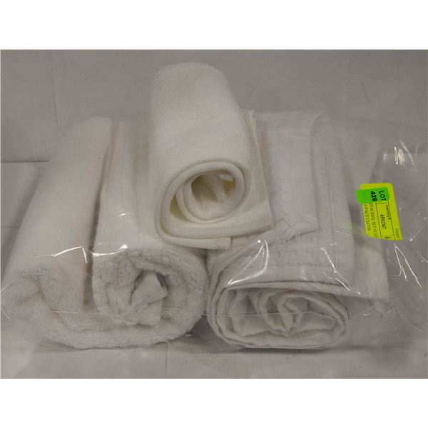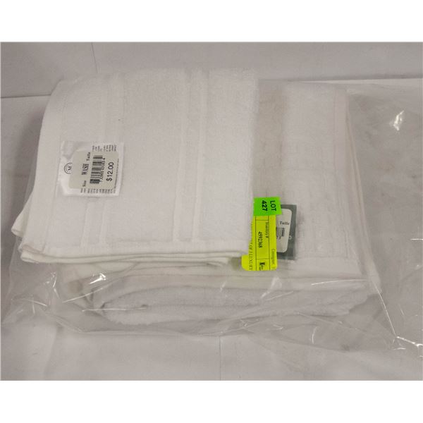 2 X GLUCKSTEIN WHITE 16" X 30" 100% COTTON HAND TOWELS, 1 MARTHA STEWART COLLECTION WHITE 13" X 13" 100% COTTON FACE CLOTH, HB...