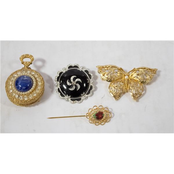 ESTATE COLLECTION OF BROOCHES & PILL KEEPER