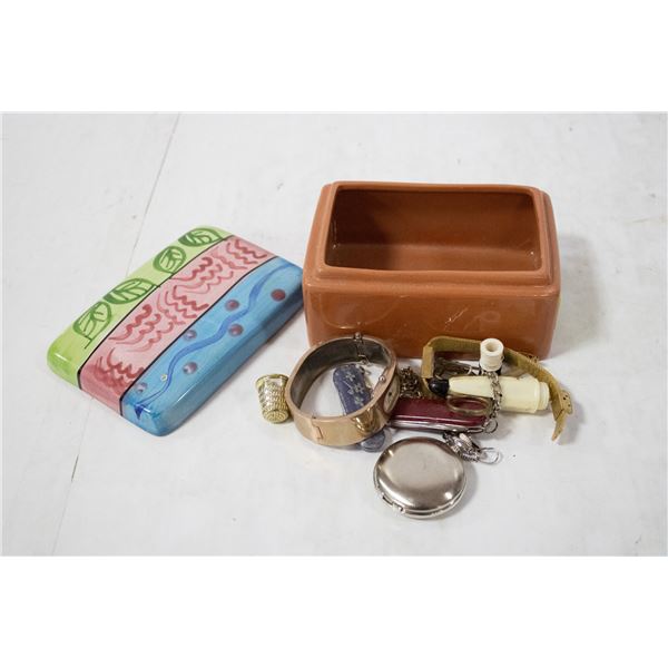 ESTATE TRINKET BOX WITH WATCHES & MORE