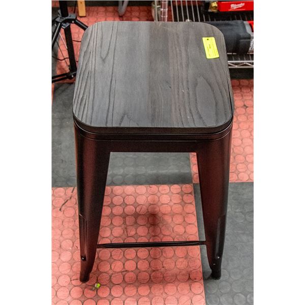BLACK WOOD AND METAL STOOL (HAS A CRACK)