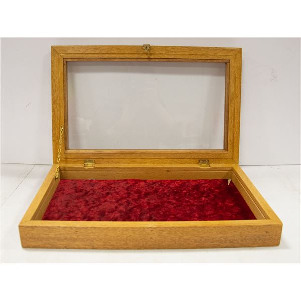 WOODEN VELVET LINED TABLE TOP SHOW CASE