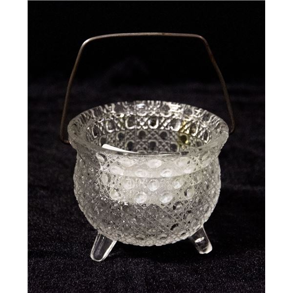 SUGAR CUBE MINI BOWL CUT GLASS WIRE HANDLE