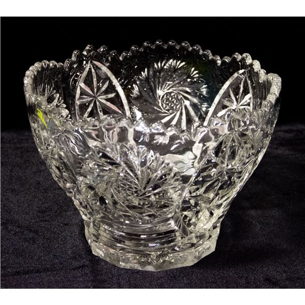 ROUND CUT GLASS BOWL 8 1/4" DIAMETER SWIRL DESIGNS