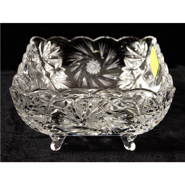 SQUARE CUTGLASS BOWL 8" SQUARE WITH FEET