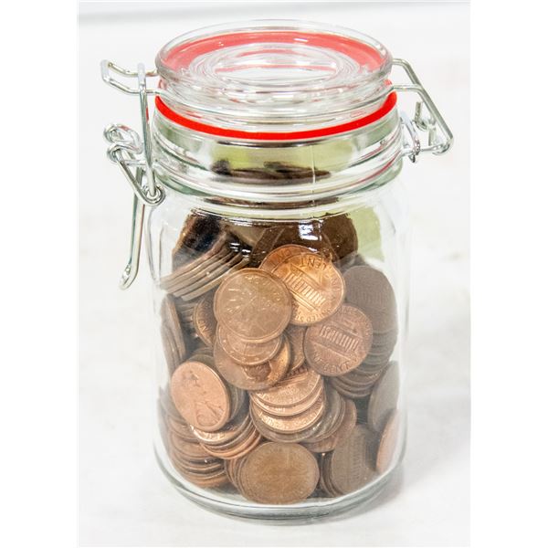 JAR FILLED WITH OLD CANADA AND USA PENNIES