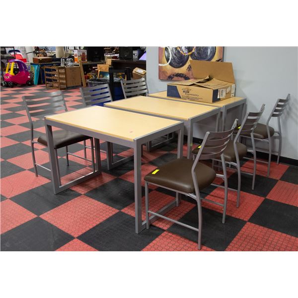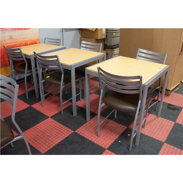 LOT OF THREE SQUARE TABLES WITH 6 CHAIRS