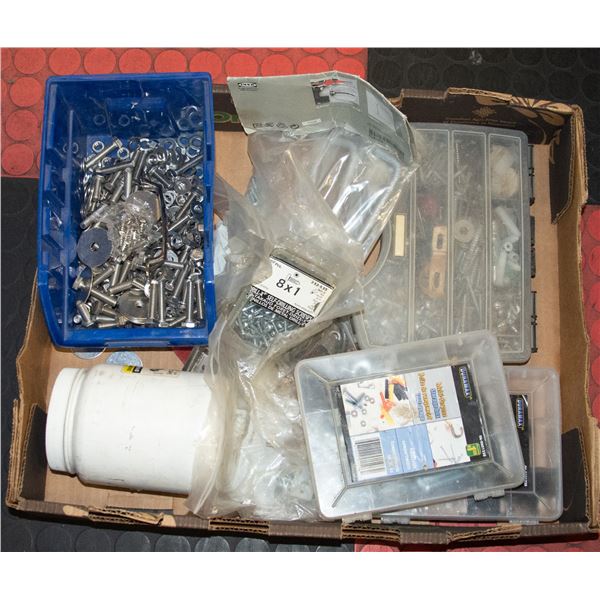 FLAT OF 6 BINS, SCREWS, SPRINGS, & MORE