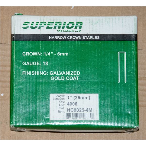 NARROW CROWN STAPLES 18 GA. 1" (25MM), BOX OF 6000