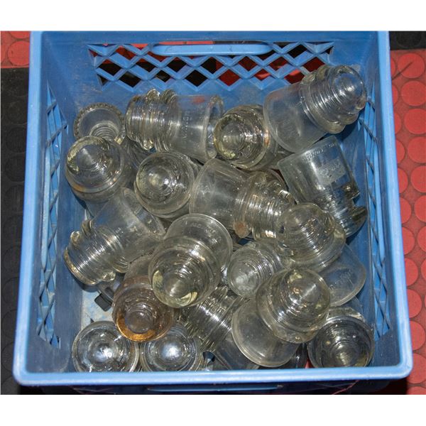 TWO CRATES ANTIQUE GLASS INSULATORS MOSTLY CLEAR