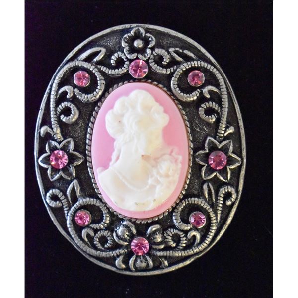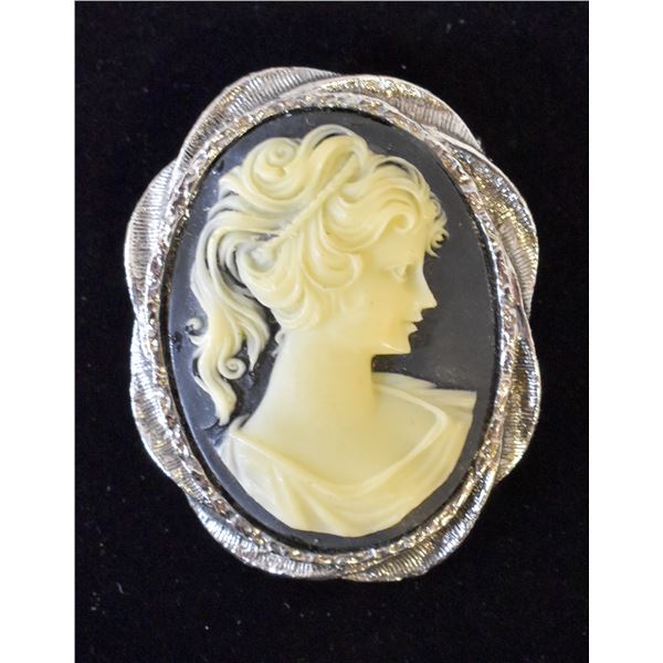 VINTAGE BLACK AND GOLD CAMEO BROOCH