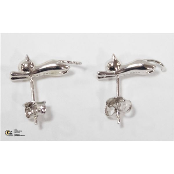 SILVER CAT EARRINGS, COMES WITH ANTI-TARNISH