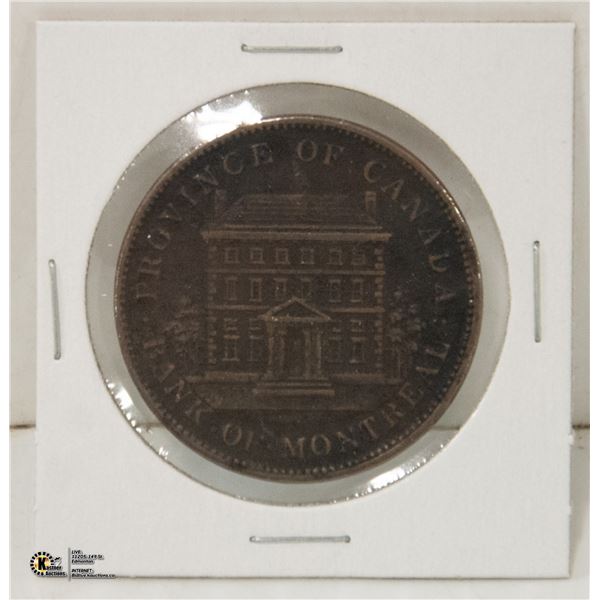 1842 BANK OF MONTREAL ONE PENNY BANK TOKEN