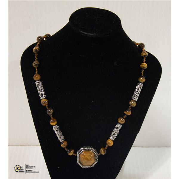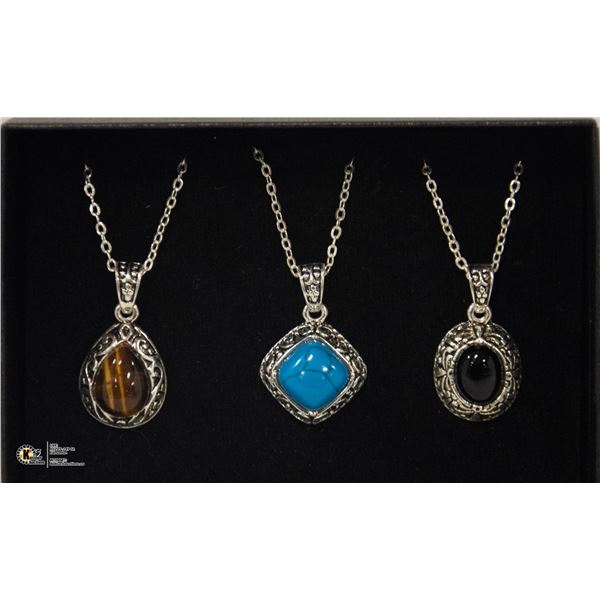 LOT OF 3 STONE NECKLACES: TIGERS EYE, TURQUOISE &