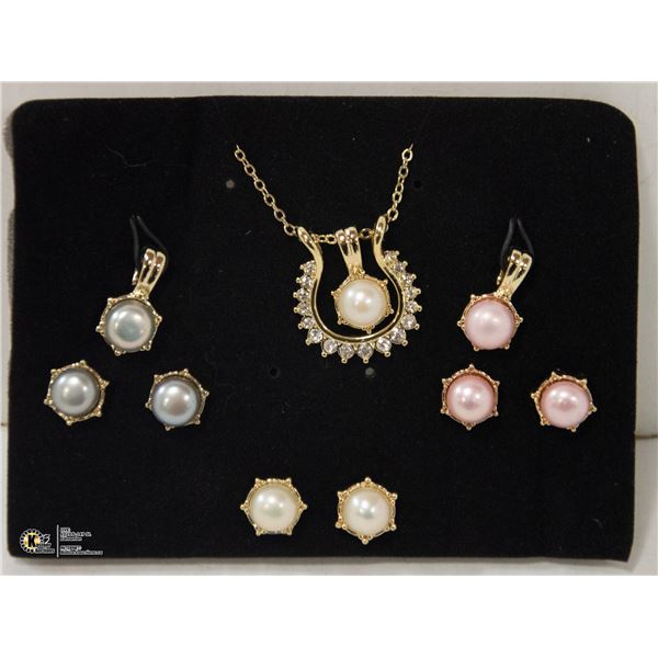 PEARL JEWELLERY SET INCLUDES 3 PAIRS OF EARRINGS &