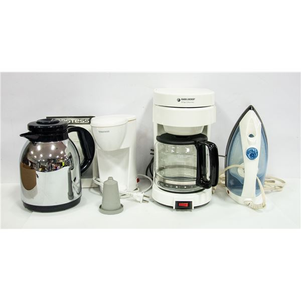 PROCTOR SILEX IRON, BLACK & DECKER 10 CUP COFFEE MAKER, V-TECH CORDLESS PHONE WITH BASE PHONE (LARGE BUTTONS), TOASTESS 1 CUP COFFEE MAKER AND...