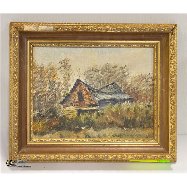 HOMESTEAD SCENE. 1974. PAINTED FOR A FRIEND. FRAME DAMAGED