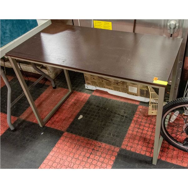 NEWLY ASSEMBLED DARK BROWN WOOD GRAIN END TABLE