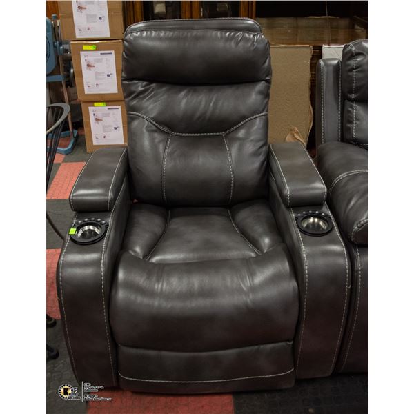 GREY LEATHERETTE ELECTRIC RECLINING CHAIR