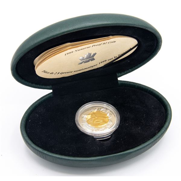 1999 SILVER 2 DOLLAR GOLD PLATED NUNAVUT PROOF