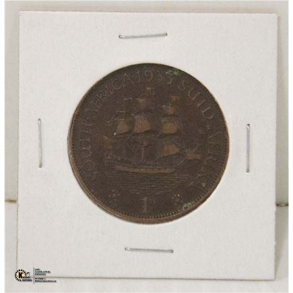 1933 SOUTH AFRICA 1 PENNY GEORGE V COIN