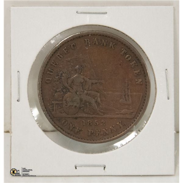 1852 QUEBEC BANK ONE PENNY TOKEN