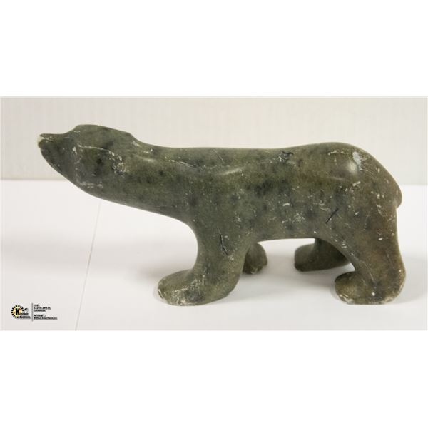INUIT GREEN SOAPSTONE BEAR CARVING FADED