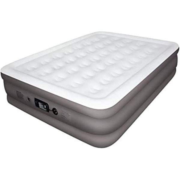 BUILT IN AIR PUMP INFLATE/DEFLATE, 56 X 76", WHITE/BROWN, TESTED, AMZ SES