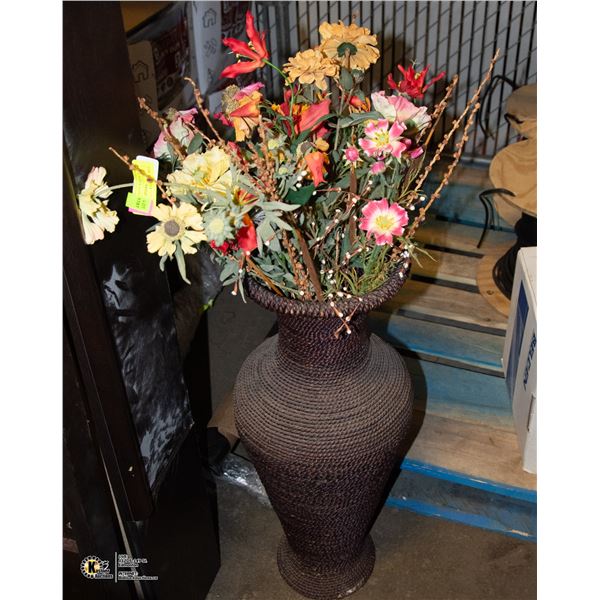 LARGE WICKER BASKET OF FLOWERS, 3-1/2 FT TALL