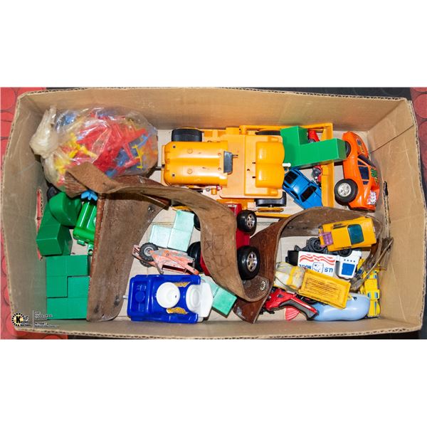 BOX OF OLD TOYS & CAP GUN HOLSTER