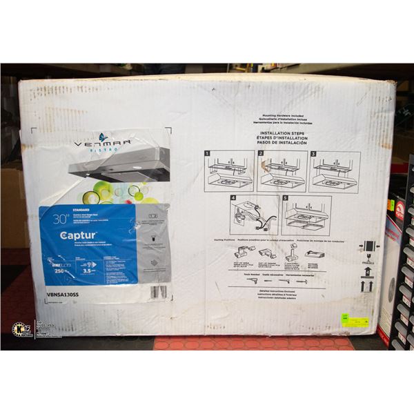 NEW STAINLESS STEEL OVERHEAD RANGE 30" IN BOX