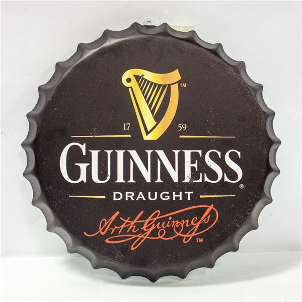 NEW GUINNESS DRAUGHT BOTTLE CAP WALL HANGING D-16"