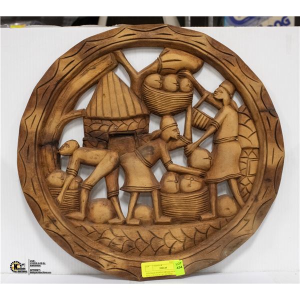VINTAGE HAND CARVED WOOD WALL PLAQUE 18" SIGNED