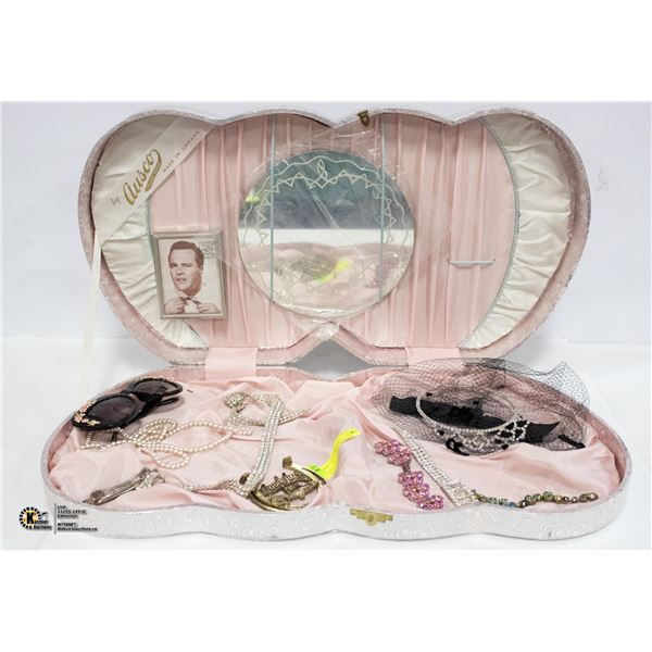 VINTAGE LARGE FULL OF OLD SPARKLY JEWELRY & MORE